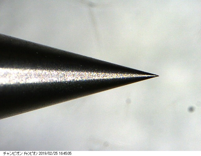 先端のカケは無くなりましたが、テーパー部が若干、湾曲しているように見えますね。