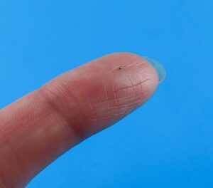 サイズ比較のため指に乗せてみましたが、小さすぎてなんのこっちゃですね。